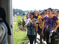 Iniciamos com uma breve procissão, recordando o Domingo de Ramos. No ginásio, preparamos o ambiente para lembrar a última ceia e iniciamos o momento com uma linda partilha feita pelos funcionários e irmãs, através dos símbolos que cada um trouxe para representar o seu "lava-pés". Após partilharmos o pão, nos colocamos a caminho, revivendo alguns momentos da Via-sacra, até chegarmos ao túmulo símbolico, de onde recebemos a feliz notícia: Jesus está vivo! E cada um de nós é chamado a ressuscitar com Ele, a "passar" da morte para a vida nova, para levar a todos o perfume da ternura e da misericórdia que brotam do Seu Coração transpassado e ressuscitado.
